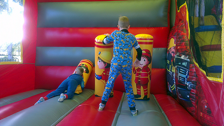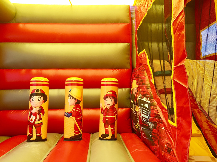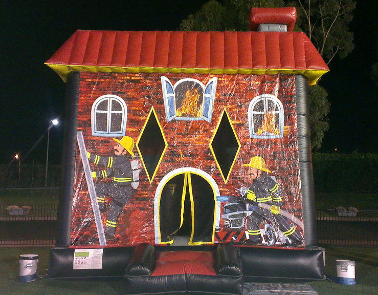 The Fire House is filled with loads of adventure play and will impress and inspire all young aged future fireman's to your next event. This Jumper offers a large jumping area with a stair case to slide and pop up's to roll around and play on. The bounce house is the perfect way to combine fun and healthy activity, and will add value to any Party or outdoor event. The jumper has mesh windows so parents and specters can have a clear view of all the fun.