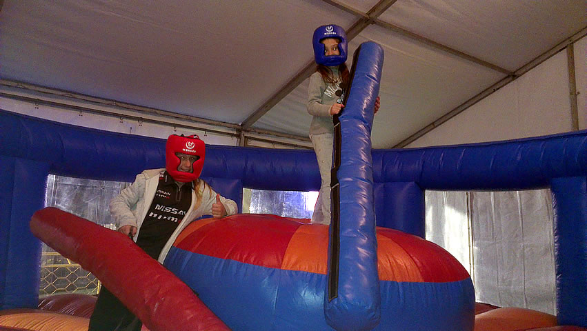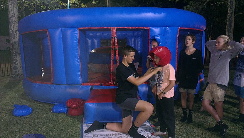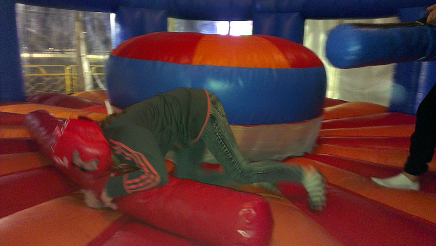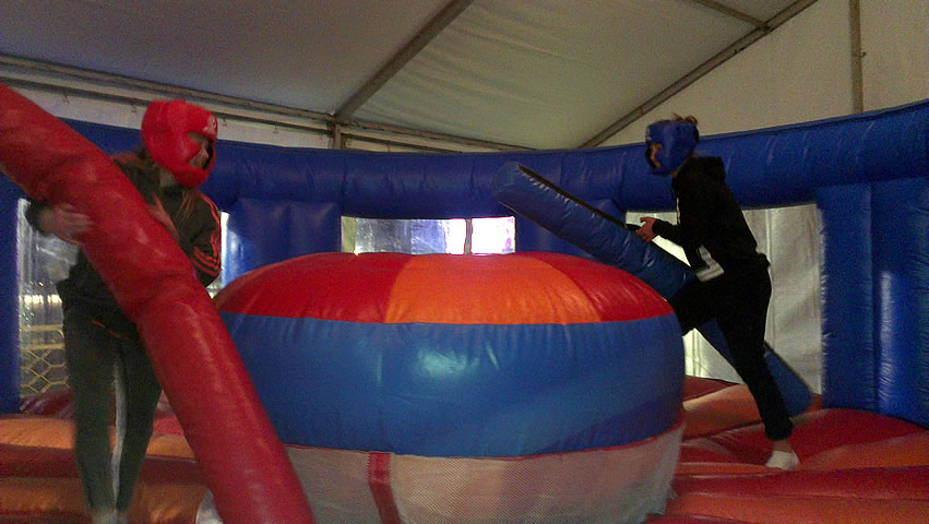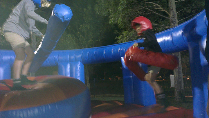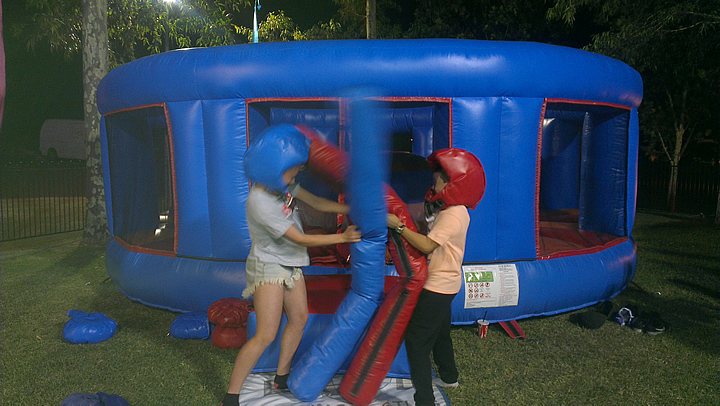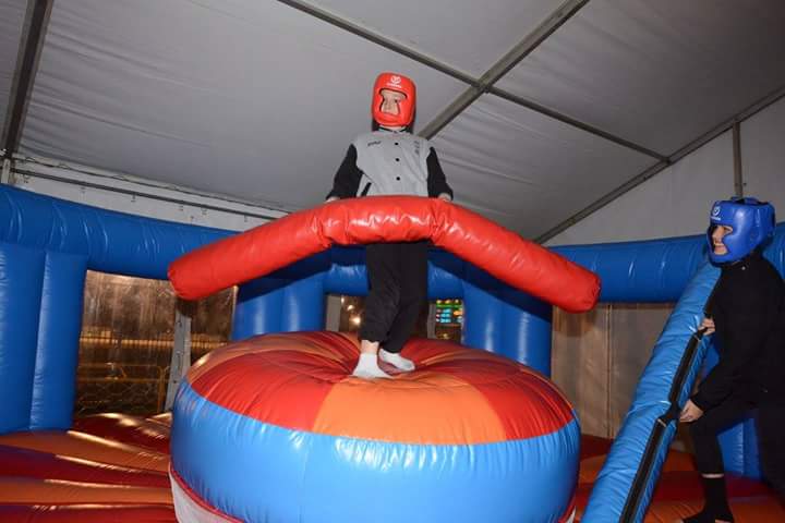 This colorful Gladiator Ring is shaped like a boxing ring and has a large pedestal in the middle. The Gladiator isn't just a test of strength it will test your balance and strategy should you strike! Is it time to dodge! Participants can experience a few rounds in the ring with this inflatable play structure and place themselves on the pedestal and use their skill STRIKE and DODGE can you knock your opponent off. This Ring will draw plenty of action at any corporate event, party or outdoor actvitiy - All ages.