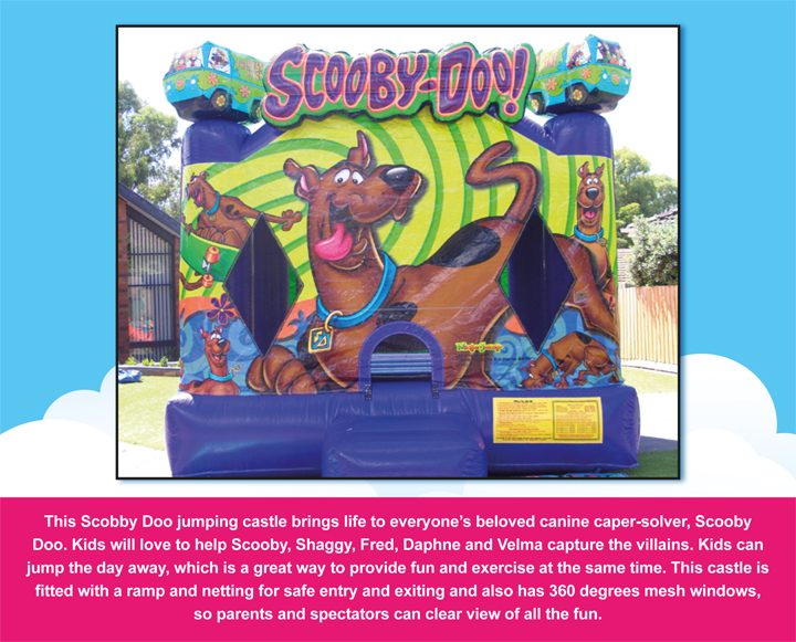 This Scobby Doo jumping castle brings life to everyone's beloved canine caper-solver, Scooby Doo. Kids will love to help